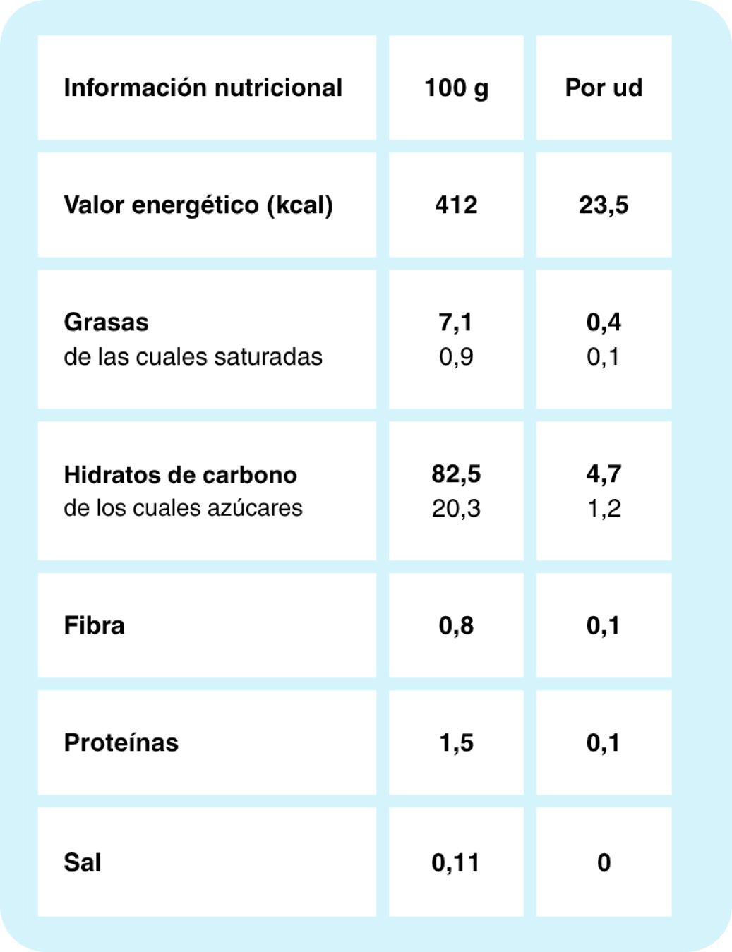 TEXTURA: Crujiente y firme para poderla utilizar durante el consumo del helado